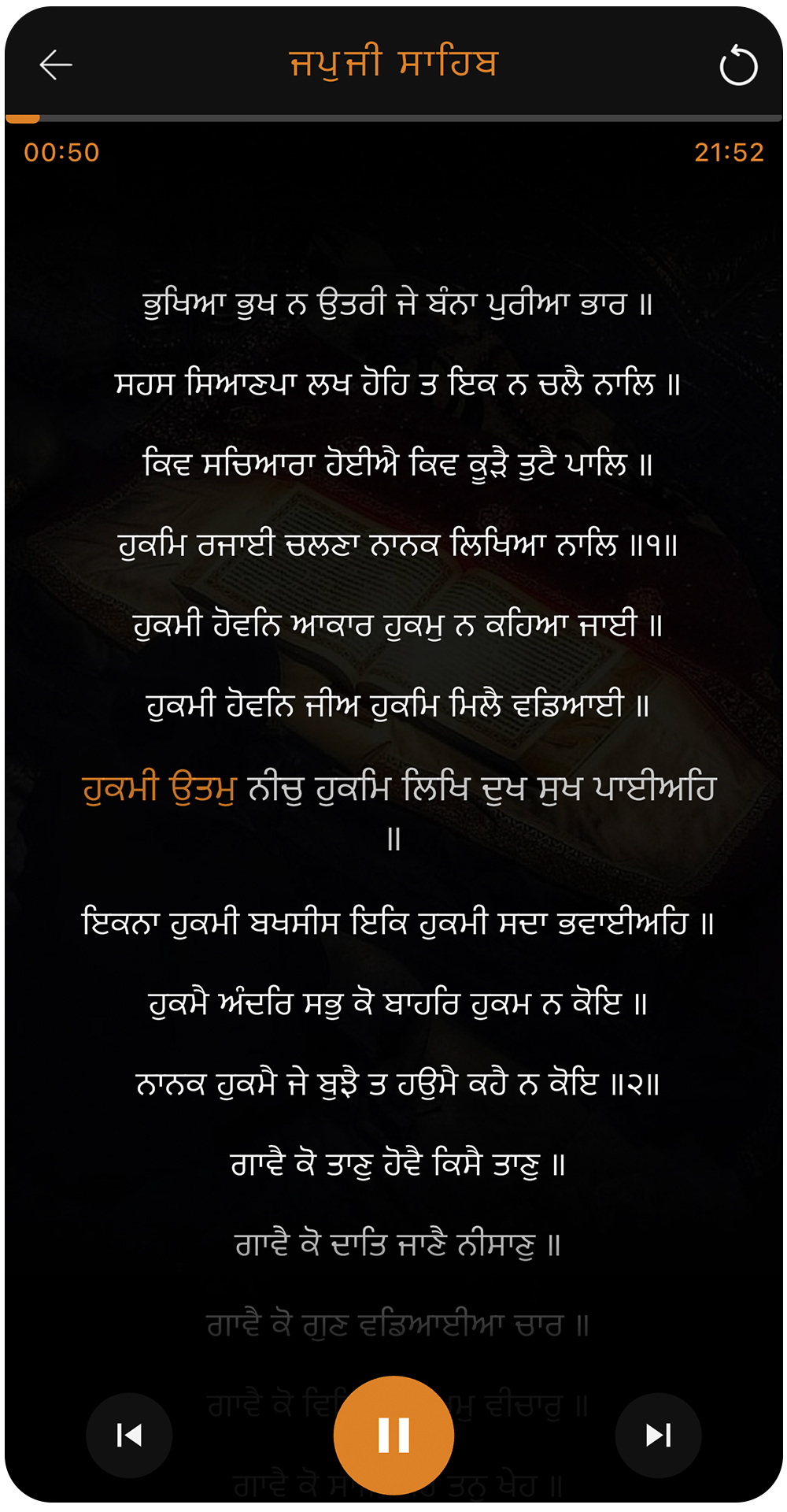 Listen to Gurbani while every line highlights in perfect timing with the audio. Follow each word easily without losing focus or rhythm. Ideal for learning, listening, and deep connection with the Bani.