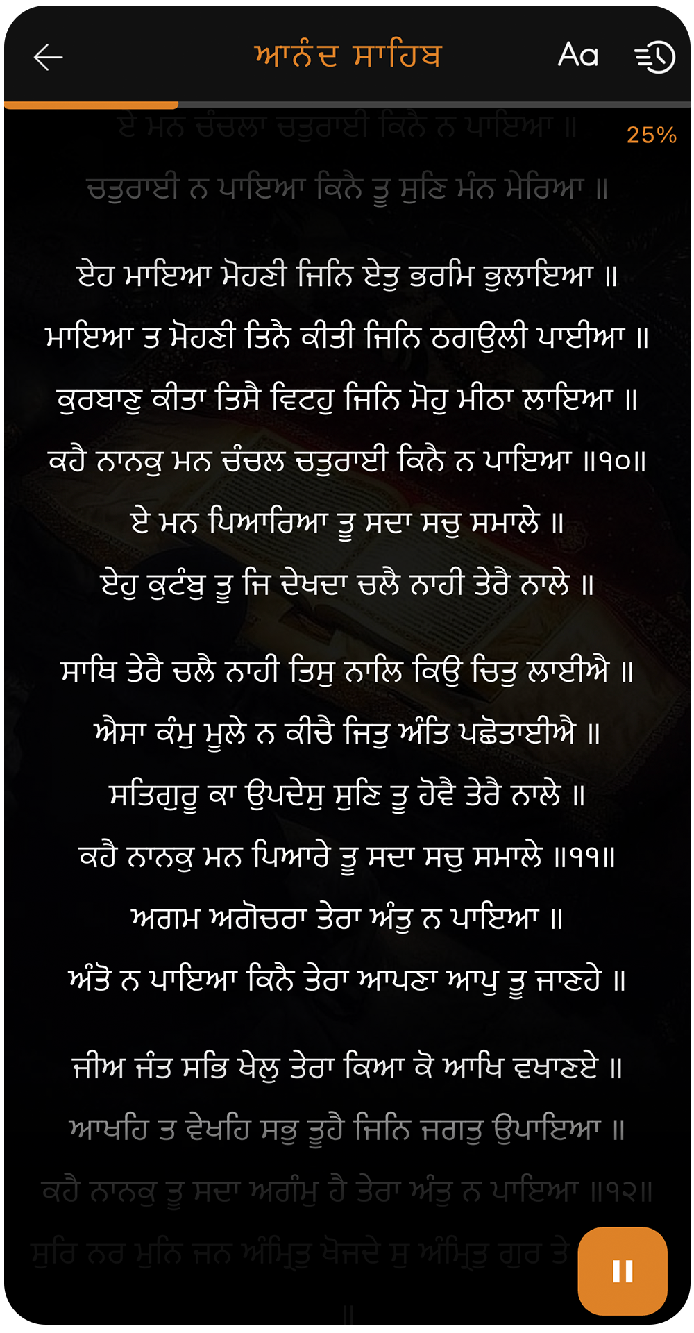 Resume exactly from where you left off — same line, same moment. No need to search or scroll again when you return. Designed to make daily paath smooth and effortless.